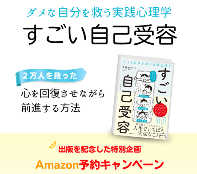 2025年12月3日 とくべつ授業オンライン 書籍出版記念 Amazon予約キャンペーン TWEET SHARE LINE 一般社団法人マインドハグ協会 理事長 矢場田つとむの書籍が角川書店より出版されることとなりました。 この本は、“心を整える力”を誰でも身につけられるようにまとめたもので、回復力と成長力を同時に育てる自己受容メソッドが丁寧に解説されています。 心にそっと寄り添ってくれる1冊となっております。 今回のAmazon予約キャンペーンでは、2025/12/14までの期間限定で3大特典が付いてきます。 まずはこちらをご覧ください
